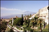 Das Bild zeigt Taormina mit dem Ätna im Hintergrund. |
