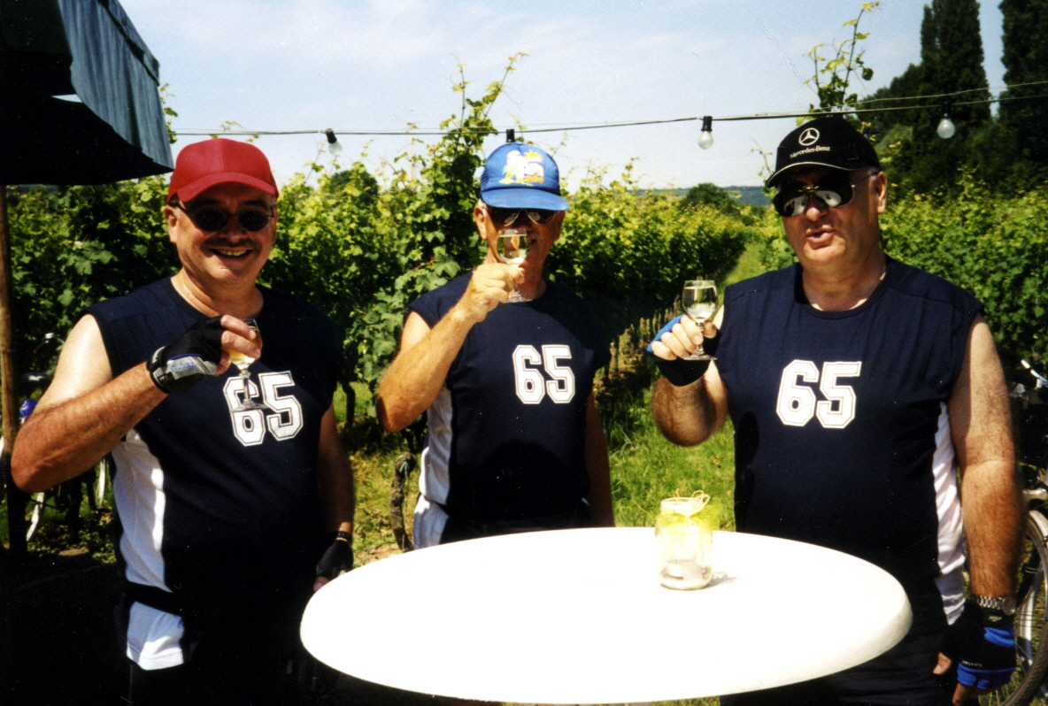Am nächsten Tag konnten wir die Reichsburg bei Cochem sehen und von der Ortschaft Moselkern wanderten wir zur Burg Elz. Diese Burg war auf der Rückseite des 500 DM-Scheines abgebildet. Endstation dieses Tages war Hatzenport, wo wir das Vergnügen hatten, im Weinhaus Ibald die ehemalige Hatzenporter Weinkönigin Sylvia II. kennen zu lernen. Am darauf folgenden Tag radelten wir über Kobern-Gondorf nach Koblenz und nahmen am Deutschen Eck Abschied von der Mosel.